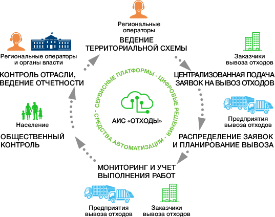 - Автоматизация охватывает цикл обращения с отходами с момента их образования