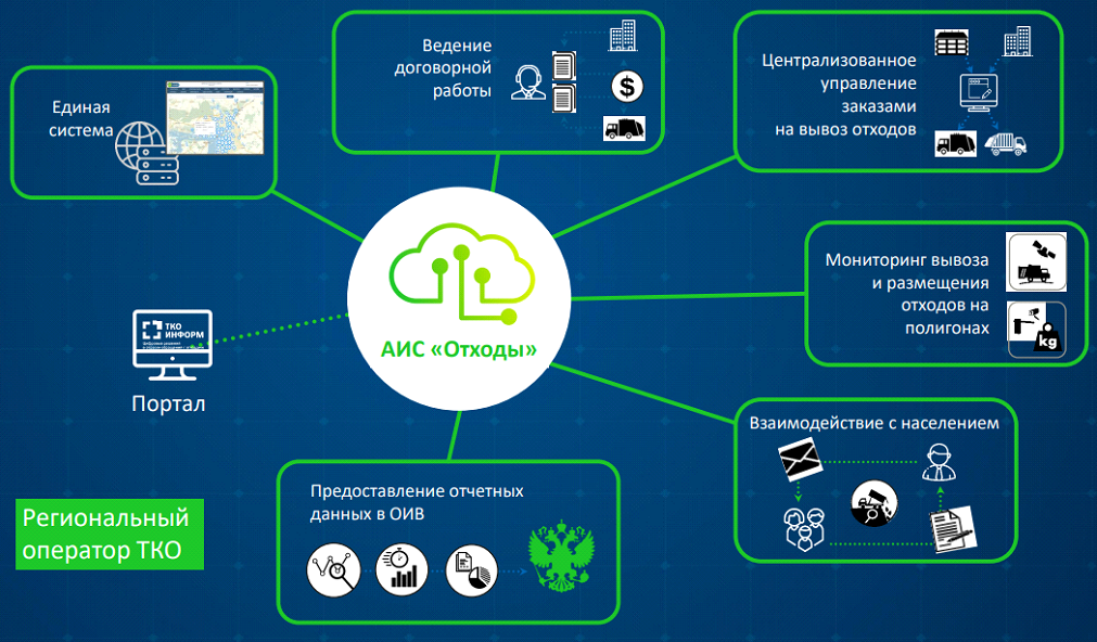 АИС «Отходы-Региональный оператор» система организации и контроля цикла обращения с отходами.Имеет следующие функциональные возможности: