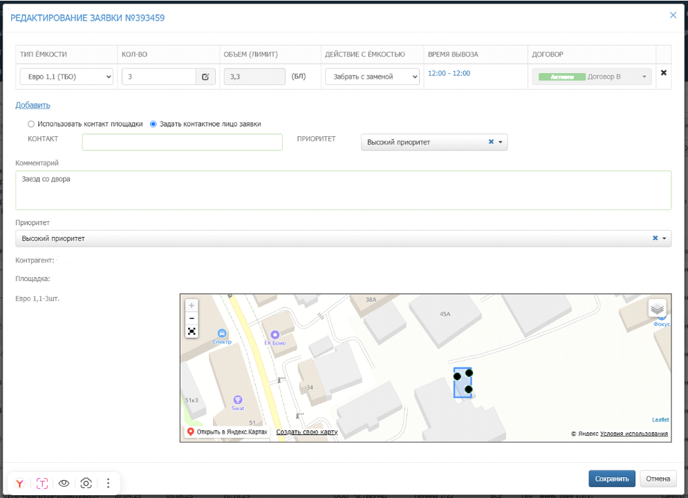 Ведение базы заказчиков услуг вывоза отходов и исполнителей, ведение договоров с юридическими и физическими лицами на вывоз контейнерных площадок, формирование заявок на вывоз, распределение заявок на вывоз между подрядными организация в зависимости от зон ответственности, контроль исполнения услуг по вывозу и размещению отходов подрядчиком, гибкие настройки критериев подтверждения вывоза/невывоза, согласование результатов оказания услуг как с заказчиком, так и с исполнителем.Описание